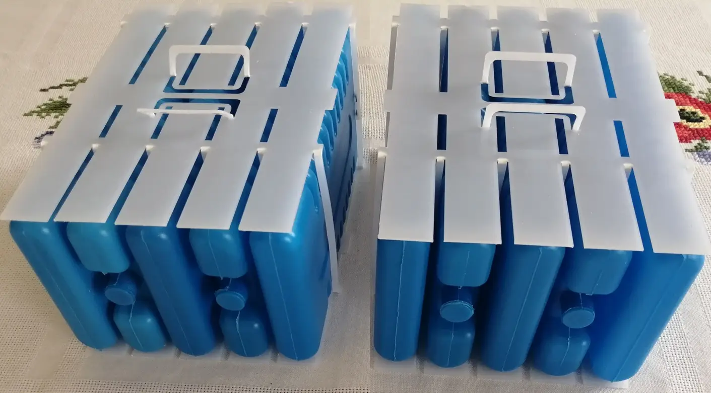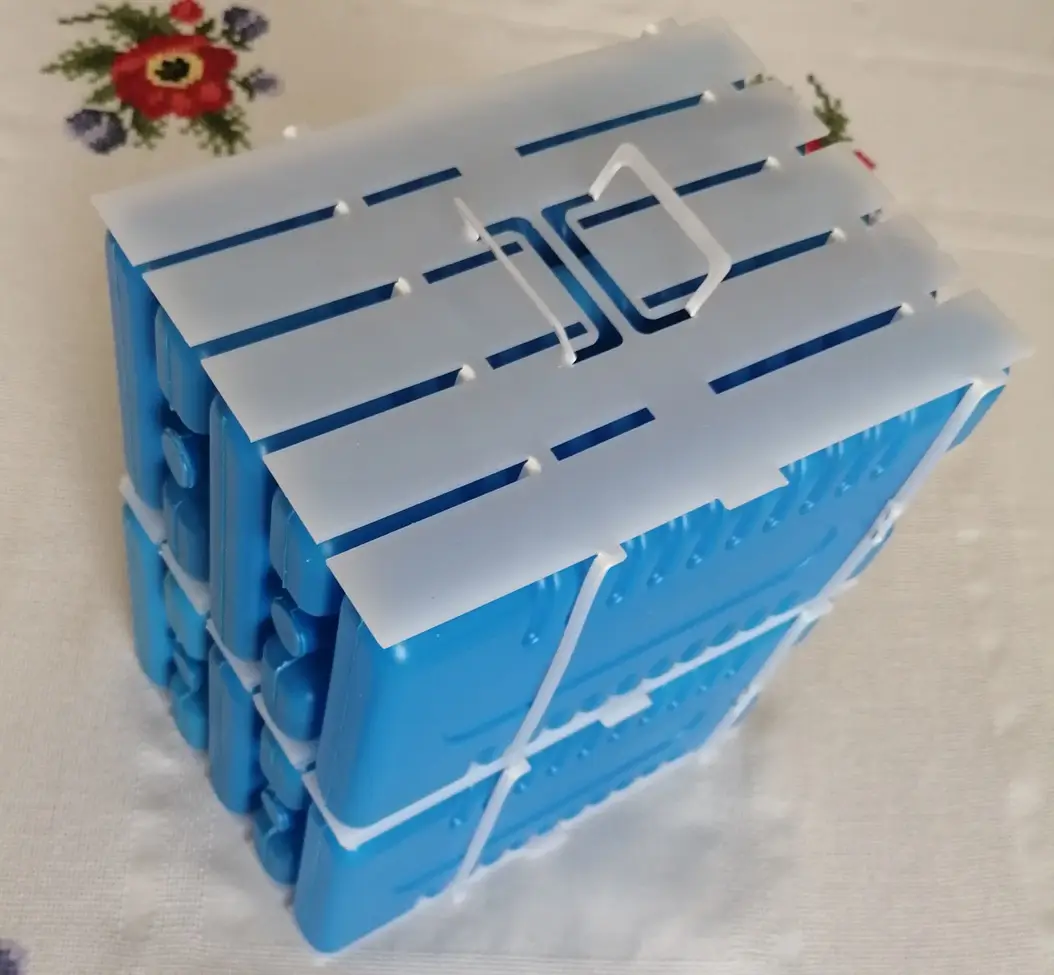 An immediate cooling time extension is possible (with these 10 chilled additional ice packs) because the rechargeable battery will not need a recharge before 2 – 3 hours of operation, so about double the using time of the ice packs.